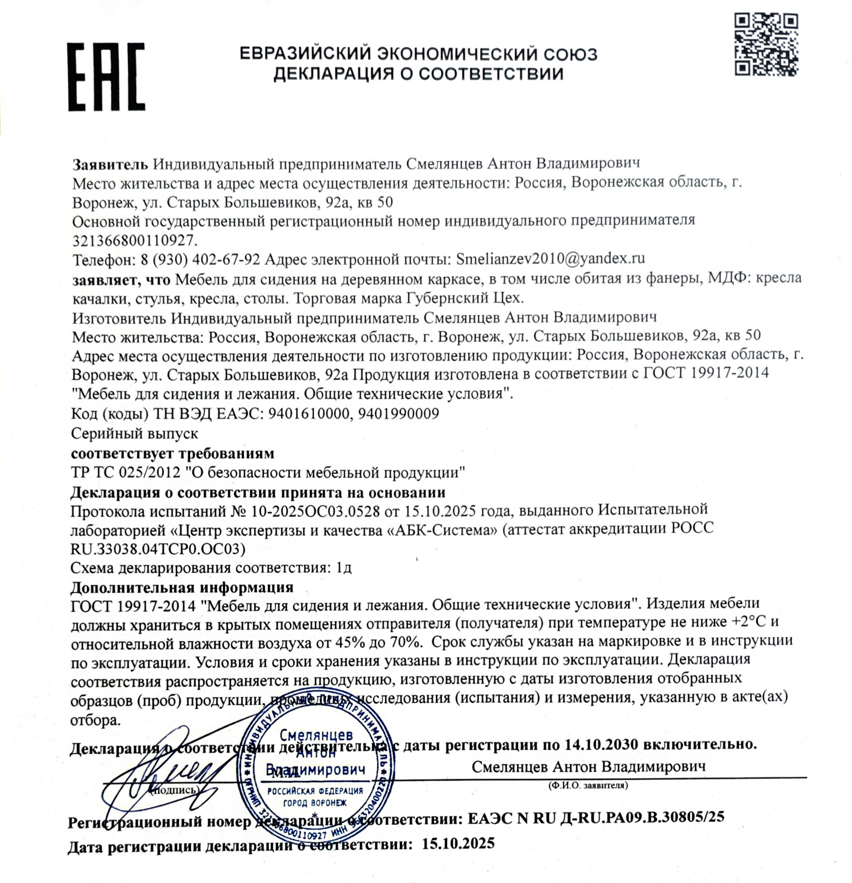 На всю мебель бренда Губернский Цех имеется декларация соответствия ЕАЭС N RU Д-RU.РА09.В.30805/25. Мы гарантируем соответствие каждого изделия заявленному описанию и фотографиям на сайте. Если после получения заказы вы обнаружили брак, то свяжитесь с нами в течение 14 дней с момента получения заказа. Мы оперативно предложим замену или возврат средств. Гарантия не распространяется на механические повреждения при сборке или эксплуатации изделий.